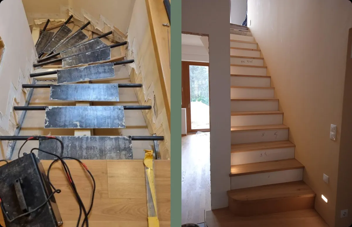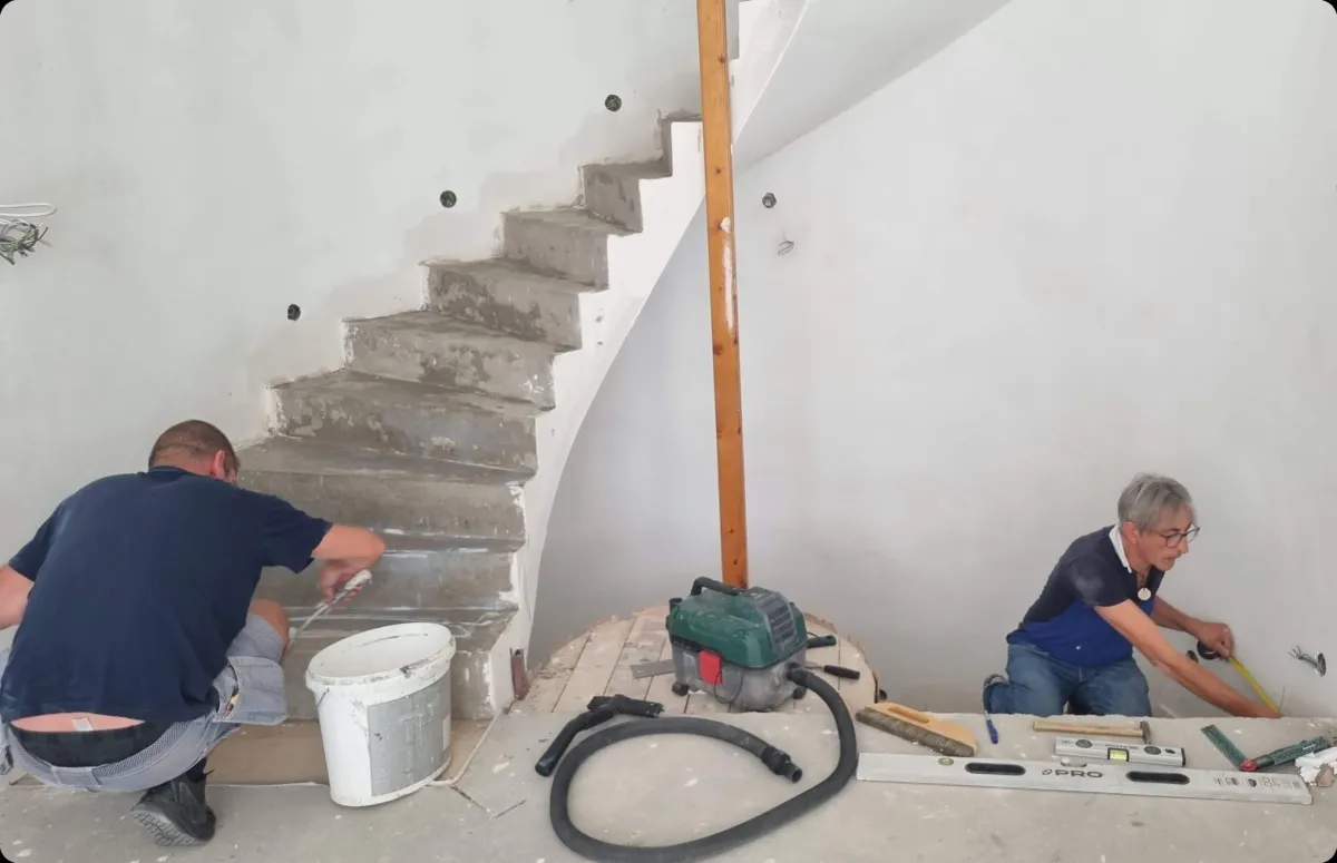 A felméréstől számítva jellemzően 3–6 hét. Íves korlát és csigalépcső esetén a bonyolultságtól függően hosszabb lehet. Recsegés mentesítés kisebb hiba esetén, bontás nélkül akár 1 napos munkával is megoldható. A vállalt határidőt tartjuk.